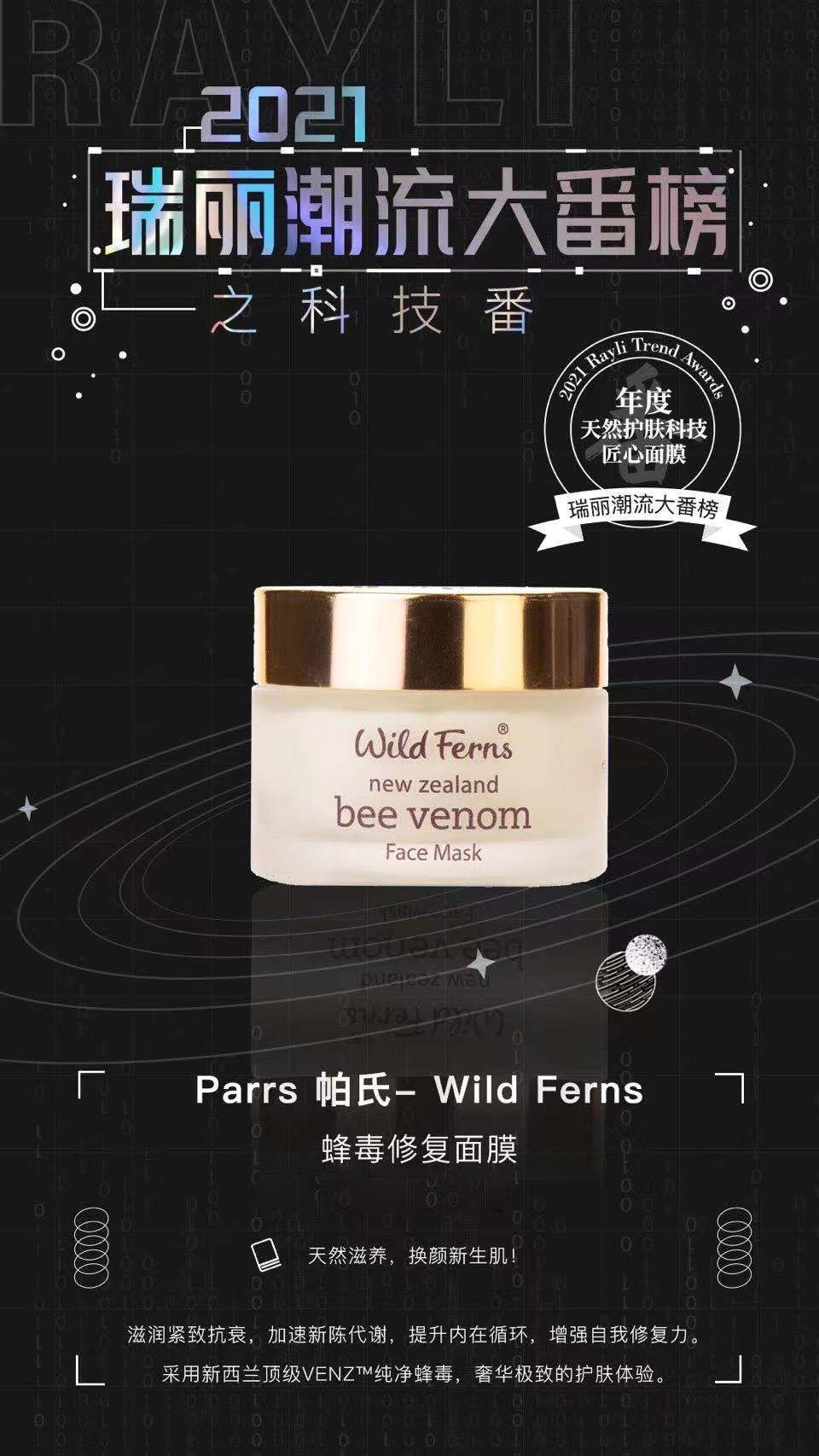 Wild Ferns 'Bee Venom Face Mask' has won the award for Natural Skincare Technology by Rayli media group in China